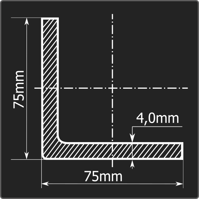 Угол стальной холоднокатаный гнутый равнополочный 75*75мм, толщиной 4,0мм и длиной 12м. Материал - углеродистая сталь. Соответствует требованиям ГОСТ 19771-93.