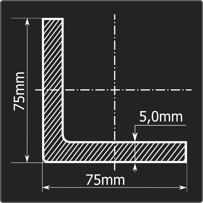 Угол стальной холоднокатаный гнутый равнополочный 75*75мм, толщиной 5,0мм и длиной 12м. Материал - углеродистая сталь. Соответствует требованиям ГОСТ 19771-93.