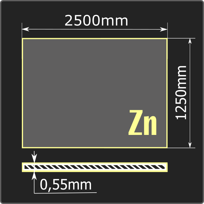 Лист стальной оцинкованный толщиной 0,55мм, шириной 1250мм и длиной 2500мм. Сталь 08пс. Соответствует требованиям ГОСТ 9045-93.