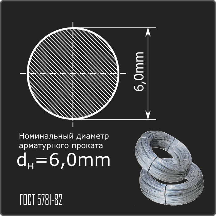 Арматурный прокат горячекатаный в мотках гладкого профиля номинального диаметра dн 6,0мм класса А240. Соответствует требованиям ГОСТ 5781-82.