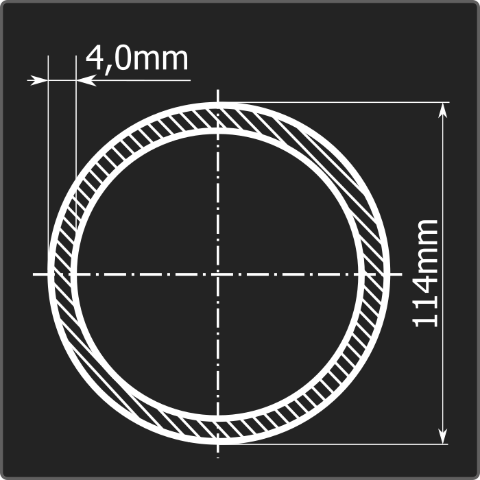 Труба электросварная стальная круглого сечения диаметром 114мм, толщиной 4,0мм и длиной 12м. Материал - углеродистая сталь. Соответствует требованиям ГОСТ 10705-80.