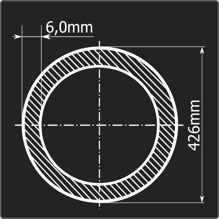Труба электросварная стальная круглого сечения диаметром 426мм, толщиной 6,0мм и длиной 11,5-11,7м. Материал - углеродистая сталь. Соответствует требованиям ГОСТ 10705-80.